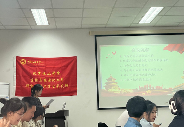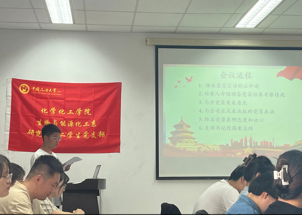 2024年6月5日上午10:00,MK体育生物与能源化工系研究生第二员工党支部于逸夫楼340召开预备党员转正大会。会议由支部书记赵锦程同志主持,应到会有表决权党员33人,实到有表决权党员23名,超过本支部有表决权党员半数以上,符合规定人数,可以开会。
