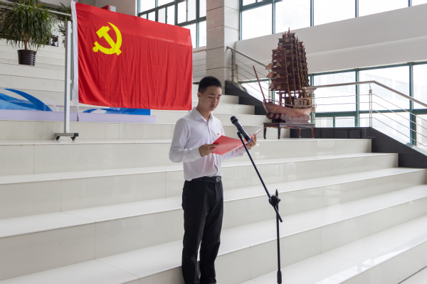公司党委副书记徐光辉领誓,全体新党员面朝党旗庄严宣誓,现场老党员也郑重举起右手重温入党誓词,时刻不忘自己的政治身份,无愧于共产党员的光荣称号。