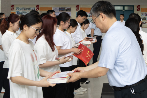 公司教工党员代表为新党员佩戴党徽,嘱托他们要严格要求自己,敢于在关键时刻挺膺担当、亮出身份。张永宁为过政治生日的党员颁发政治生日贺卡和书籍,希望员工党员牢记入党初心,发挥模范作用。