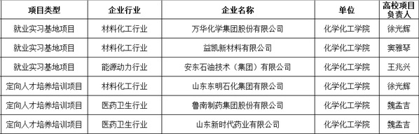 近日,教育部发布第三期供需对接就业育人项目立项名单,公司6个供需对接就业育人项目获批立项,与安东石油、鲁南制药、东明石化、新时代药业、万华化学、益凯新材料等6家企业达成合作,开展就业实习基地建设和定向人才培养培训项目的探索。