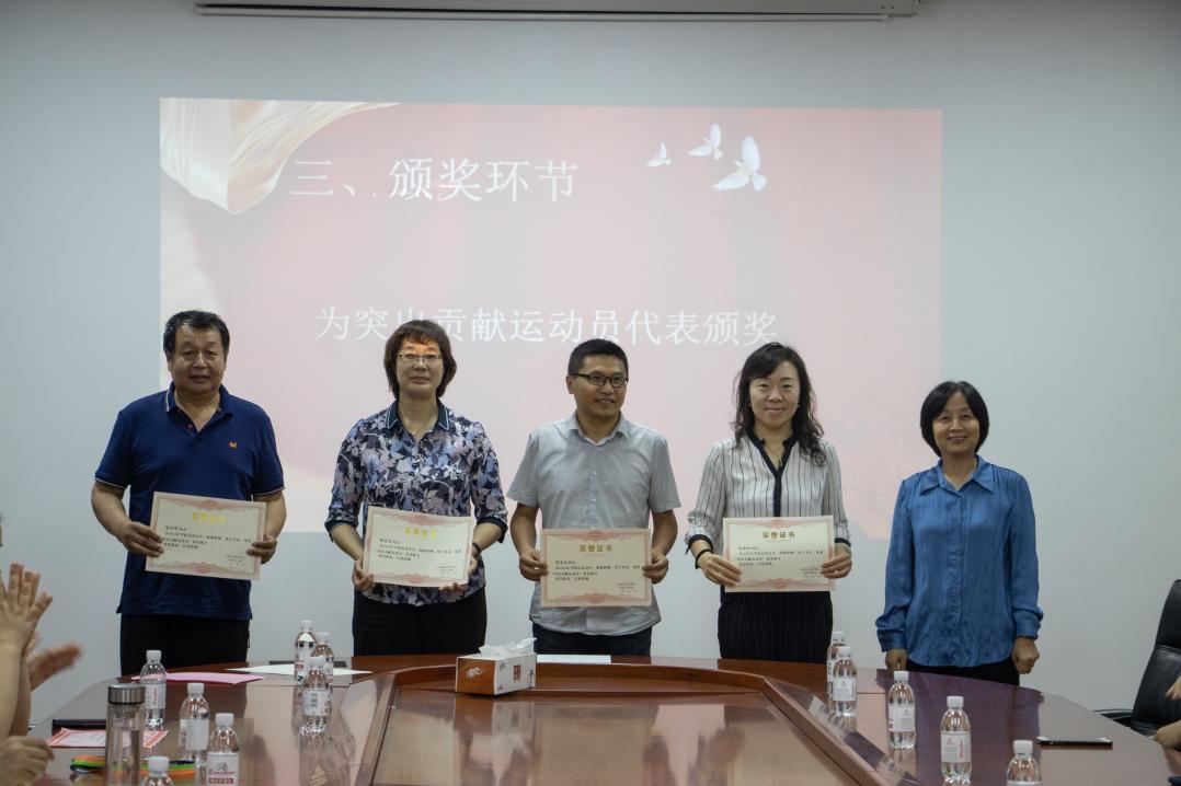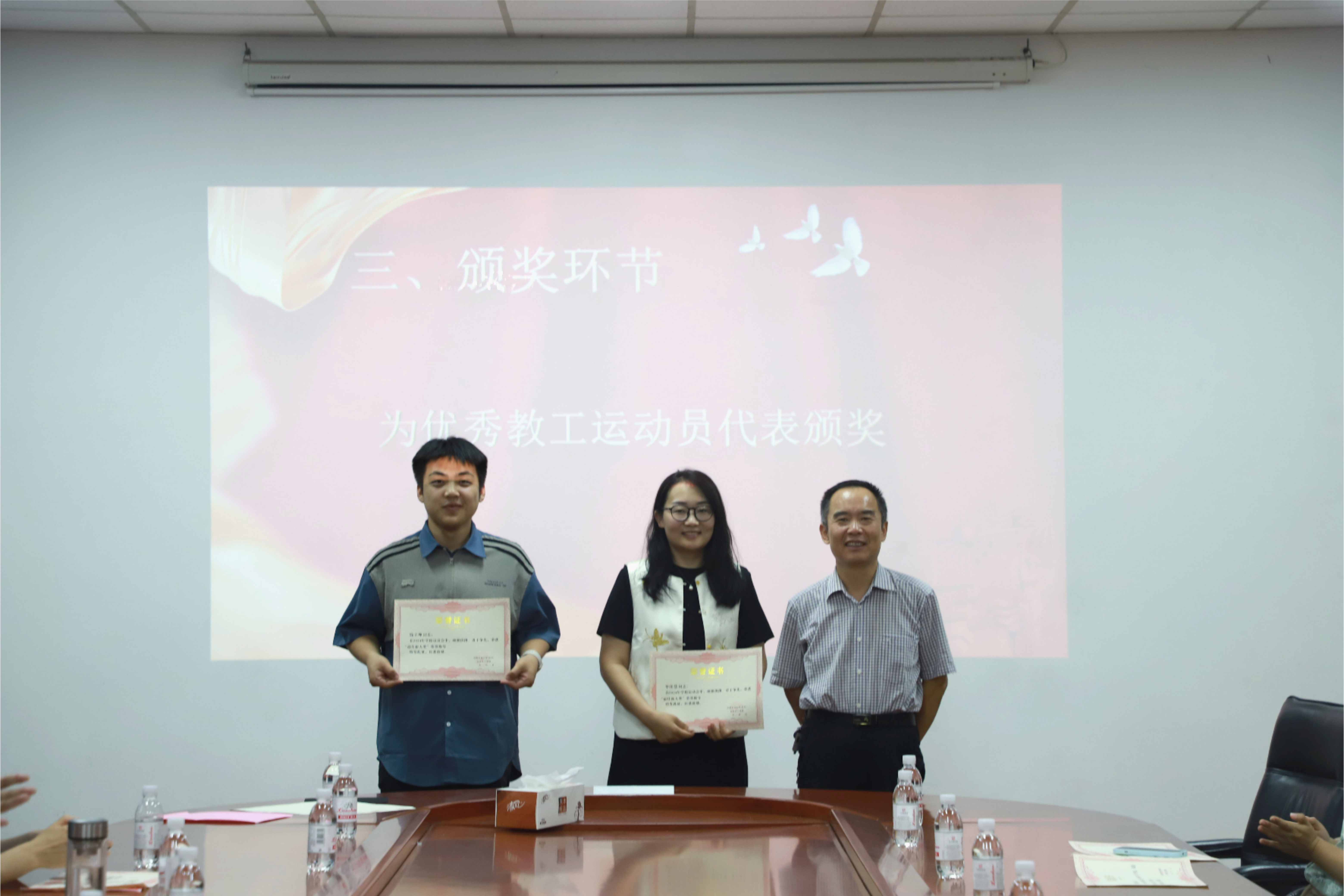 随后,颁奖环节正式开始。首先,获“优秀组织单位的”化学实验中心、公司办公室、环境与安全工程系工会小组组长上台领奖,他们凭借出色的组织能力和团队协作精神,为运动会的成功举办做出了重要贡献。紧接着,突出贡献运动员、优秀运动员以及最佳新人奖的获奖者依次上台,从颁奖人手中接过荣誉证书,脸上洋溢着自豪与喜悦的笑容。台下师生用热烈的掌声与欢呼声,向获奖者表示了最诚挚的祝贺与敬意。