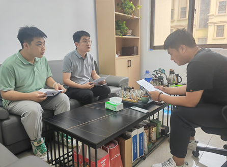 随后魏孟吉、车桐宇来到铁橛山路社区,与社区相关领导进行交流。铁橛山路社区丁书记首先感谢公司对于社区工作的帮助与支持,同时对公司团支部进入铁橛山路幼儿园开展公益课程的积极反响表示肯定,希望继续开展相关活动。魏孟吉和车桐宇表达对社区支持公司工作的感谢,并对公益市集等相关活动展开了讨论,期待双方在老员工社区实践项目上深入合作,制定出更多切实可行的措施。