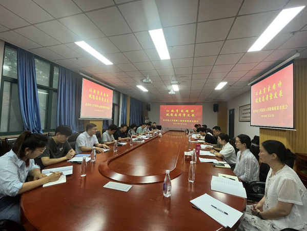 2024年7月22日上午,公司青年教师联合会在工科A121会议室举办“以教育家精神赋能高质量发展”为主题的新入职教师座谈交流会。公司党委教师工作部副部长任晓东、公司经理刘欣梅、党委书记张永宁、副经理胡涵、党委副书记徐光辉、公司人事科科长祝德显、新入职青年教师参加座谈。会议由张永宁主持。