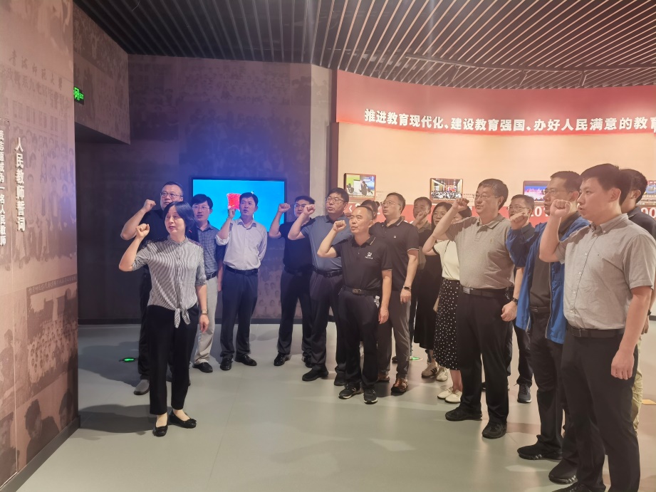 7月29日,MK体育的教师们前往中国教师博物馆进行参观学习。该博物馆通过丰富的展品和详实的史料,展现了从古至今中国教师群体的光辉形象与卓越贡献。教师们在这里深刻感受到了教师职业的崇高与伟大,更加坚定了投身教育事业、培养未来栋梁的决心。在博物馆第二展厅内,公司经理、山东省黄大年式教师团队负责人刘欣梅带领全体教师举起右拳,共同重温了人民教师誓言:“我志愿成为一名人民教师,忠诚党的教育事业,遵守教育法律法规,履行教书育人职责,引领员工健康成长,学为人师,行为世范,为国家的繁荣和民族的振兴不懈探索和奋斗!”这一刻,教师们的心紧紧相连,共同许下了对教育事业的庄严承诺。