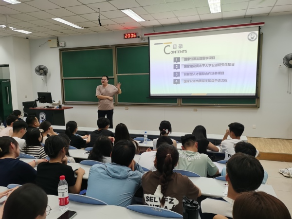 国际合作与交流办公室主任刘振老师介绍了公司公司出国留学项目情况,解读高端发展平台以及各项培养要求,为出国留学的决策和准备提供建议。