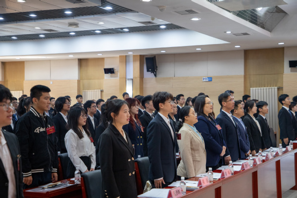 雄浑嘹亮的国歌声宣告了大会开幕式暨第一次全体会议的开始。张栩赫以及栾雯晶分别代表校员工会与校研究生会进行了致辞。他们肯定了MK体育员工会和研究生会作为联系广大同学的桥梁,在思想引领、组织建设、服务员工成长发展等方面所付出的努力。同时,他们也希望公司员工会和研究生会能严格按照公司党委和团委要求,不忘初心、牢记使命,团结带领全院青年员工,继续谱写组织事业的崭新篇章。