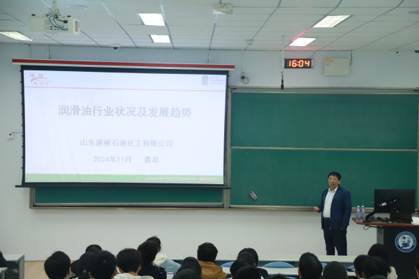 11月8日,化蕴大讲堂第19期在西廊201教室成功举办,本次讲堂特邀山东源根石油化工有限公司总工程师袁俊洲作为主讲嘉宾,就润滑油行业的现状与发展趋势进行了深入剖析。公司党委书记张永宁、重质油国家重点实验室主任田原宇教授、化学工程系宋春敏教授受邀参加活动。