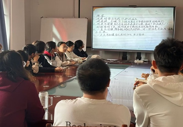 活动伊始,班长董鸿洋同学将同学们的疑问进行了整合,清晰地陈列在演示文档中,班主任吴萍萍老师耐心地解答了同学们关于老员工活的疑问。,并分享了自己去欧洲穷游时恰逢铁路工人罢工的经历,并感慨道:“人生中困窘的时光才更值得怀念。”待同学们的困惑被一一解答完毕,吴萍萍老师便与同学们共同前往了小黄山,秋高气爽,层林尽染,漫步在小黄山中,心中的焦虑与迷茫也被秋风吹散了几分。班主任的细心解答,如秋风般让同学们的心境澄澈。诚然,迷茫和不知所措是人之常情,可更重要的是应当如何坚定意志继续走下去。这个问题在每一位同学心中都有了各自的答案。在未来的日子里,同学们将带着这份解答,如同种子在心中生根发芽。他们将学会在挑战面前不退缩,用知识和智慧去解决问题,用行动去证明自己的选择。每个人的成长之路虽不相同,但共同的是那份对未来的无限憧憬和对梦想的执着追求。