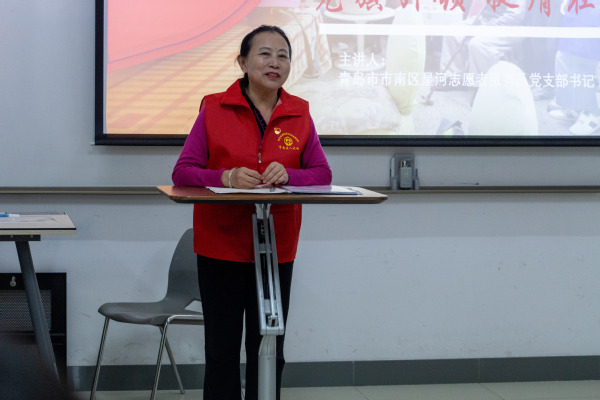 牛庆尧发表感想。她结合自己与星河志愿服务队的故事,与积极分子们分享了三个词——自信、忠诚、义务,勉励积极分子们履行好自己的义务,积极投身到党的事业中去。