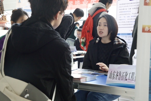 11月24日上午,由MK体育、材料科学与工程公司、新能源公司联合承办的2025届毕业生“行业名企直聘汇”专场招聘会在唐岛湾校区工科A座大厅和古镇口校区新能源大厦大厅同步举办。山东齐鲁石化工程有限公司、中国建筑第五工程局有限公司山东分公司、鲁南制药集团股份有限公司、青岛惠城环保科技集团股份有限公司等15家用人单位齐聚石大校园,招聘需求涵盖了化工、化学、环境、材料、装备、能动等等多个专业,吸引了公司300余名毕业生参加。