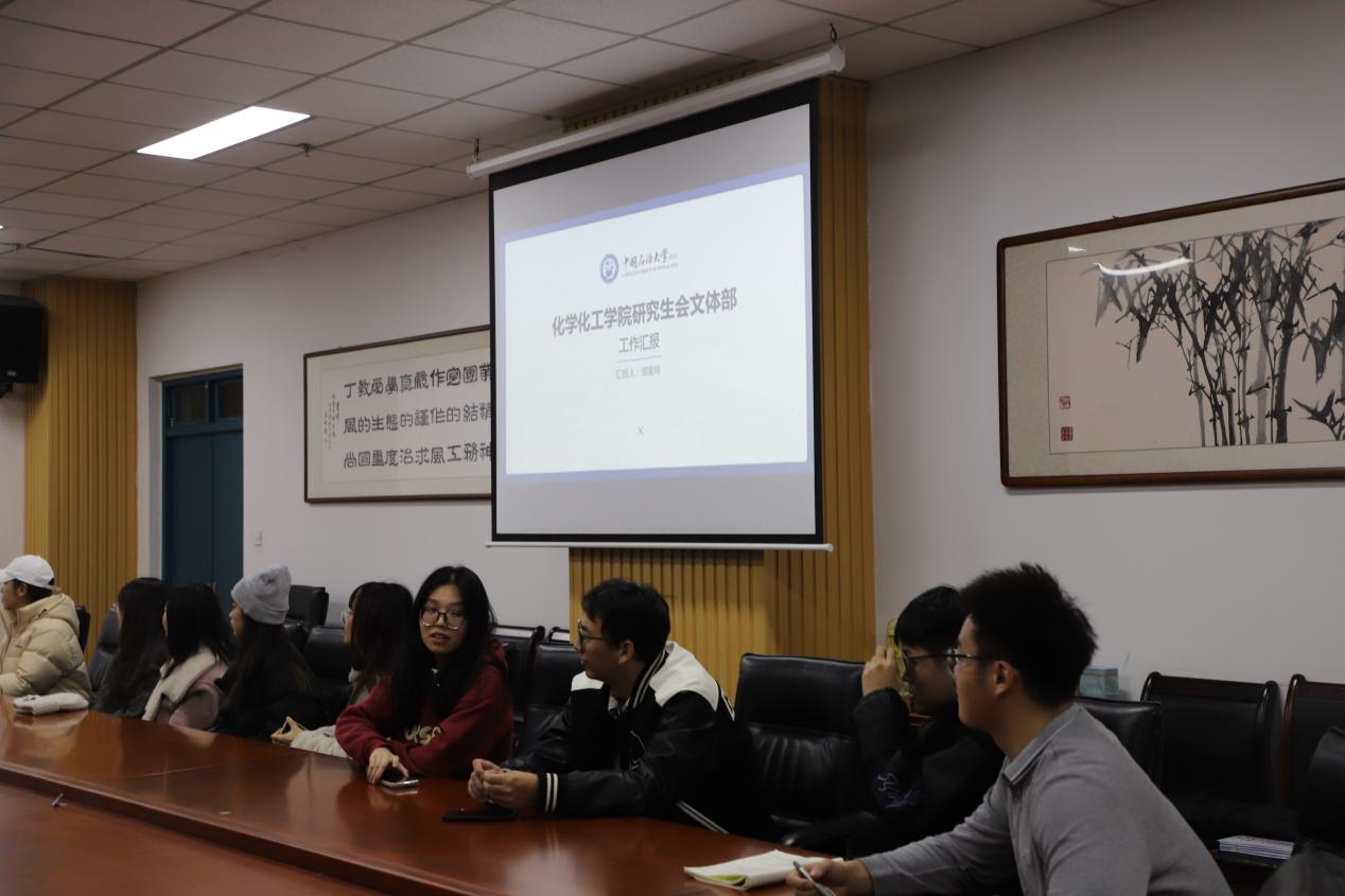 随后,各部门负责人简要汇报了近期工作和未来的工作计划。文体部邹宝琦介绍了近期举办的导学齐羽活动等系列文体大赛,指出文体部将充分发挥系列活动的品牌效应,丰富校园文化生活,赋予各项活动以深厚的文化意蕴。就业权益部负责人李冠岐提出,以“权益大家”为核心,通过联系企业负责人举办多样化的就业招聘,期望通过各项权益活动的开展,引导研究生不断完善个人职业生涯规划将进一步控制好系列活动的周期。宣传部负责人王正超表示,将会举行各种思想宣传活动,完成新闻稿撰写、活动推送、就业推送等常态工作,提升宣传工作的质量与效率。组织部负责人魏子成提出,将做好组织建设与制度建设,通过举办各种培训工作,提升研究生会成员的综合素质和能力。研究生会主席团盛誉、周迅、马泽辉在听取了各部门的汇报后,与会成员就如何进一步提升研究生会工作效能、加强部门间协作等问题进行了深入讨论。大家一致认为,要进一步加强研究生会内部建设,提升成员素质和工作能力;同时,要加强与同学们的沟通联系,及时了解同学们的需求和意见,为同学们提供更加优质的服务。