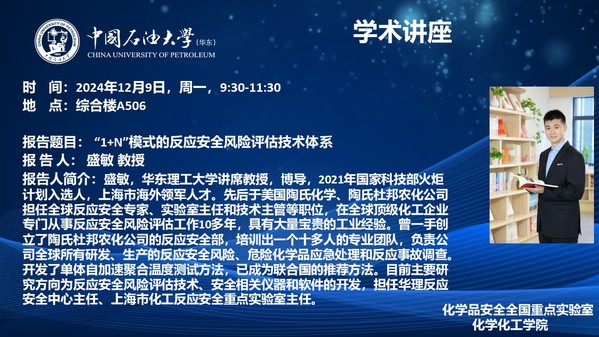 【预告】学术讲座:“1+N”模式的反应安全风险评估技术体系