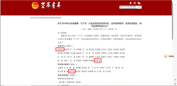 近日,2024年山东省暑期“三下乡”社会实践表彰名单公布,公司辅导员钱立坤获评优秀指导教师,保研辅导员孙新龙、2022级应用化学本科生张学东获评优秀员工。