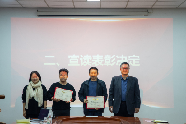 在表彰环节,徐永涛为获得“新闻宣传先进集体”的单位颁发奖牌,张永宁、成玲玲为获评“新闻宣传突出贡献个人”的教工代表颁发荣誉证书,刘义、杨安为获评“新闻宣传先进个人”的教工代表颁发荣誉证书,胡涵、魏旭洁为荣获“十佳员工记者”的员工代表颁发荣誉证书。