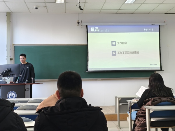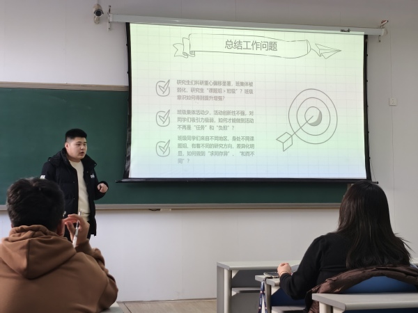 1月7日下午,硕士2024级于南堂108召开班级工作年度述职答辩会。公司辅导员窦雅琴,兼职辅导员赵欣茹、刘辰伟和全体班长团支书参会。