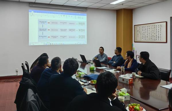 在会议的关键环节,针对江苏油田研究院提出的技术难题,环境与安全工程系刘其友副教授代表研究团队进行了项目理解的汇报,他结合自身丰富的研究经验以及对江苏油田采油废水实际情况的深入分析,提出了切实可行的点对点解题思路。刘其友副教授的汇报得到了与会人员的高度认可,为解决实际工程难题提供了清晰的方向。在随后的交流环节,研究院的郭鹏高级工程师与公司各位老师就实际问题展开了深入且卓有成效的讨论。交流内容涵盖了接触氧化系统的生物活性评价、系统除油菌群与环境因素的关联分析及微生物代谢路径的机制解析等多个方面。双方在交流中碰撞出思想的火花,为后续合作提供了丰富的思路和建议。