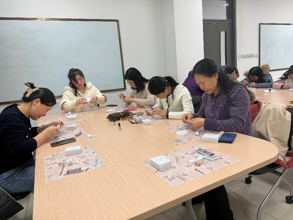 活动现场气氛热烈,女教职工们一边制作胸针,一边分享生活趣事与工作心得。活动不仅拉近了同事间的距离,也让参与者在忙碌的工作中感受到节日的温暖与关怀。