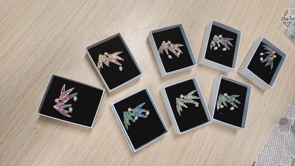 此次活动提供了丰富的材料包,包括珍珠、贝壳、亮片、丝线等,参与者可以根据个人喜好设计独一无二的胸针。在专业老师的指导下,大家通过剪裁、镶嵌、粘贴等步骤,完成了各具特色的作品,展现了女性的创造力与审美能力。