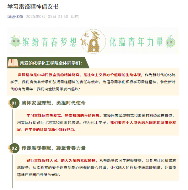 一直以来,公司高度重视公司学子志愿服务工作,学雷锋月中化院学子以雷锋为榜样,用实际行动践行这份精神,他们用微笑传递温暖用双手帮助他人,用坚持书写属于自己的青春篇章,让雷锋精神在新时代焕发光芒,将这份爱与担当代代相传。