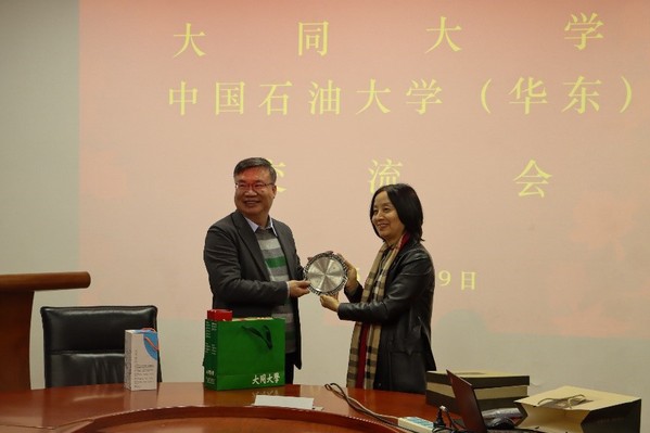 刘欣梅经理与台湾大同大学来宾交换礼物