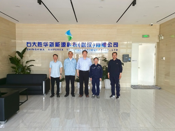 4月8日,张永宁先后走访中国石化润滑油公司华中分公司和石大胜华新能源科技(武汉)有限公司。在公司97级员工、中国石化润滑油公司华中分公司党委书记万涛陪同下参观了公司正在建设中的生产基地,92级员工、石大胜华新能源科技(武汉)有限公司栗志介绍了石大胜华立足武汉开拓南方市场的发展历程和未来规划。张永宁向企业介绍了公司近几年的发展情况,就人才培养、就业指导和员工工作进行了热烈讨论。