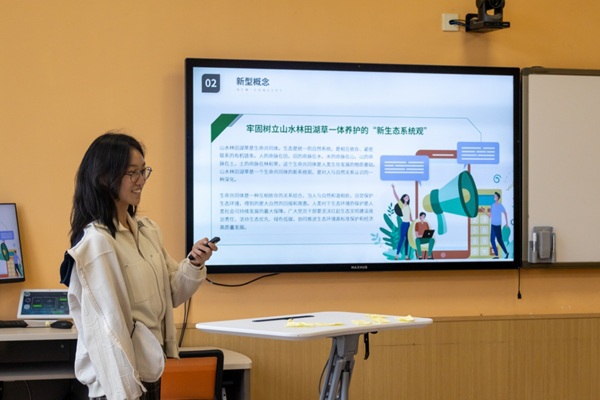 活动临近尾声,团支书王希妍再次登台,介绍保护环境的具体措施。她强调,加强环保宣传教育是提升环保意识的关键,只有让环保理念深入人心,才能让环保行动成为每个人的自觉选择。
