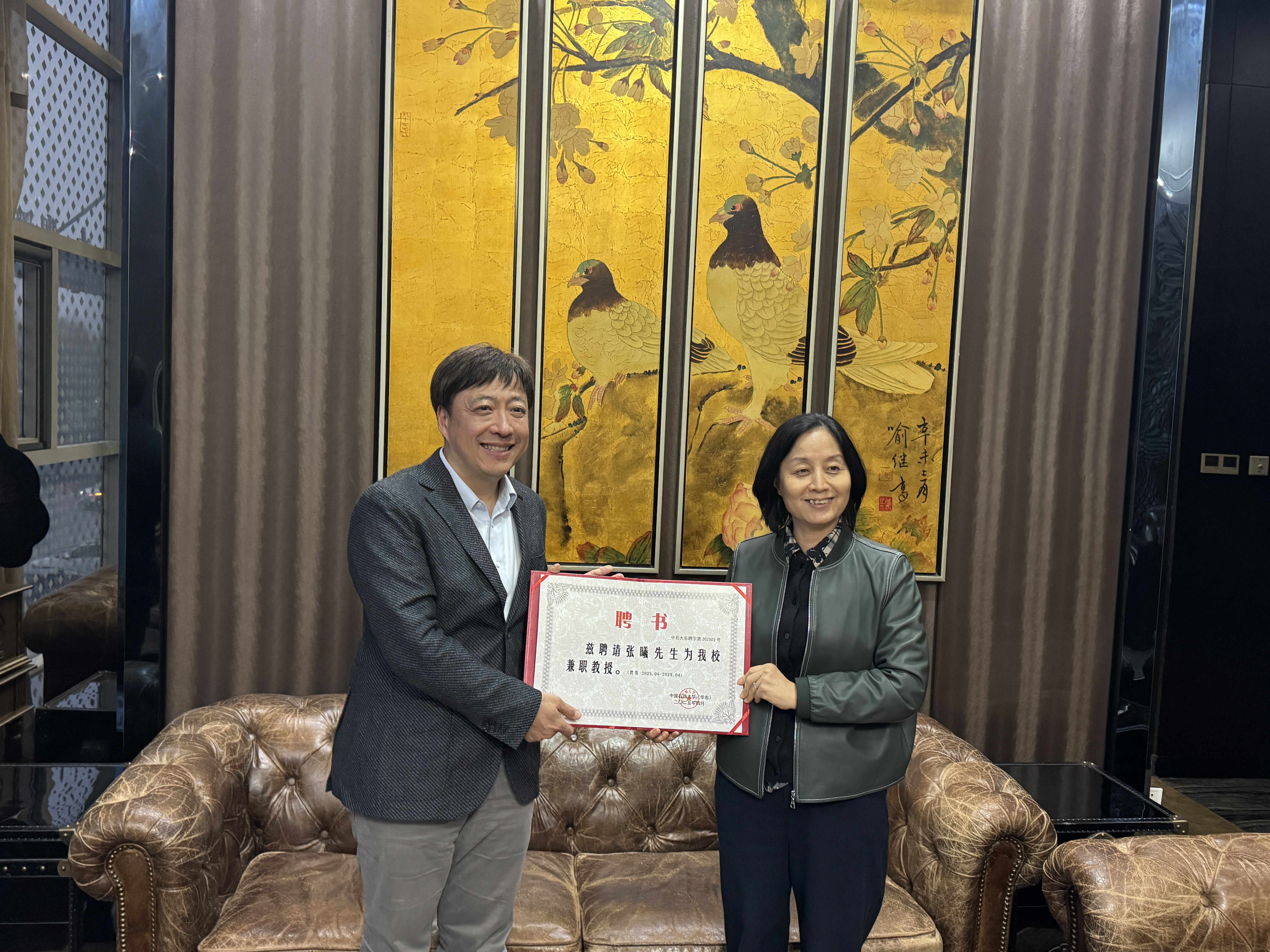 公司经理刘欣梅为张曦颁发兼职教授聘书