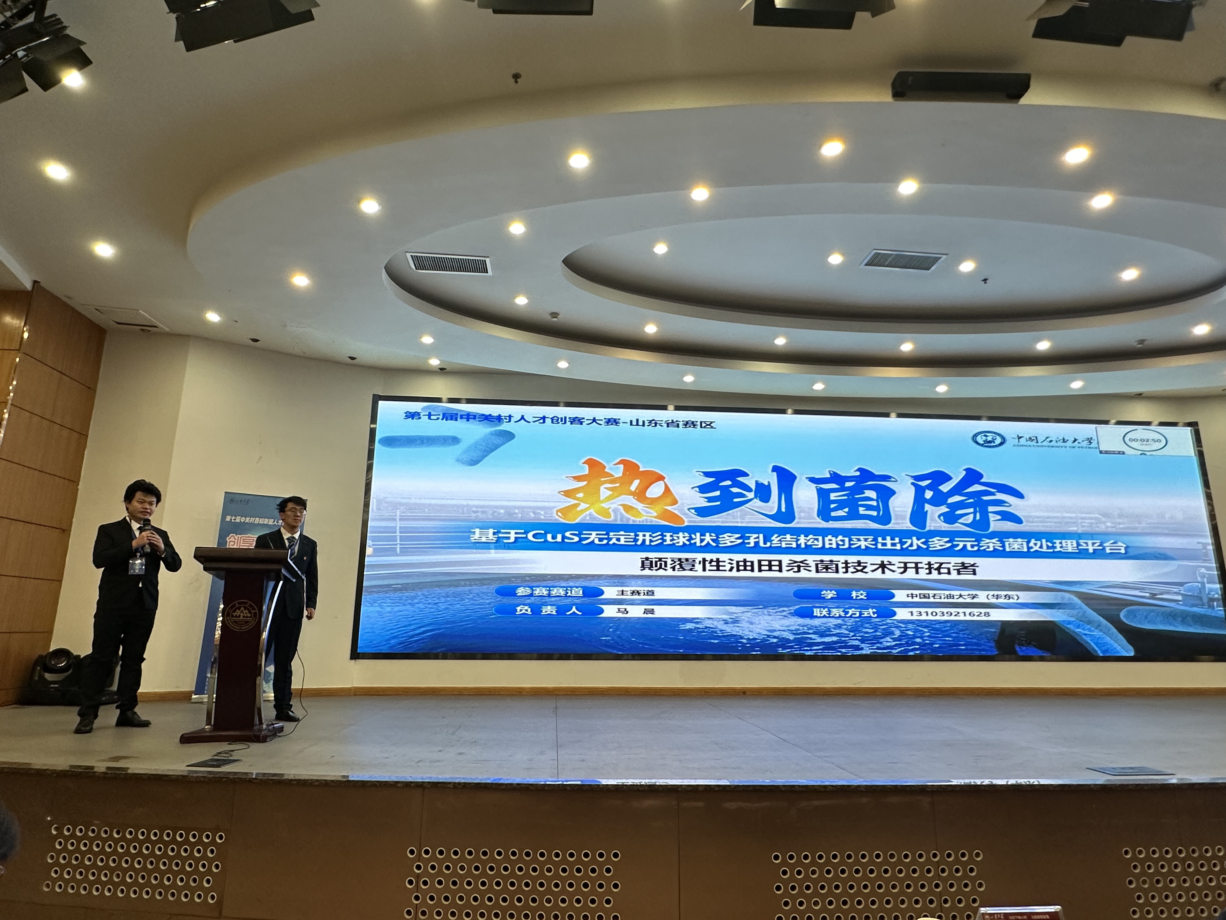 4月19日,第七届中关村人才创客大赛山东区域赛在山东大学(威海)玲珑学堂正式落下帷幕。由公司王继乾、王栋、李慧、徐海老师指导,本科生2022级员工马晨负责的项目《热到菌除——基于CuS无定形球状多孔结构的油田污水细菌光热处理平台》斩获冠军,并入围全球半决赛;公司金鑫、严文娟、王兆兴老师指导,本科生2022级王雅琦负责的项目《海纳百酸——首创海藻糖基中分子稀有果酸产品群》斩获三等奖的优异成绩。在众多高校团队中脱颖而出,为公司和公司争得了荣誉。