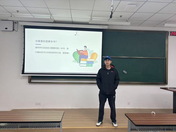 随后,在阅读分享环节,同学们踊跃走上讲台,分享自己近期阅读的好书。我们请了班级梁宇豪同学分享了《百年孤独》,他讲述道孤独并非是一种消极的状态,而是每个人与生俱来的宿命。或许正是这种孤独,促使我们不断探索自我,追寻生命的价值。就像书中所说:“生命中曾经有过的所有灿烂,原来终究,都需要用寂寞来偿还。”