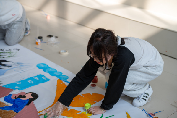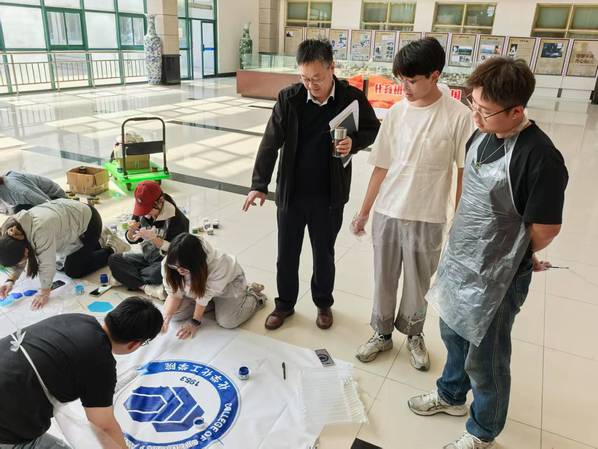 经过两小时的协作创作,一幅充满创意与活力的彩绘作品精彩呈现。画面中,朝气蓬勃的校园剪影、象征学科特色的化工装置、寓意梦想的展翅雄鹰等元素交相辉映,既展现了同学们扎实的绘画功底,更传递出“以青春之我,创青春之未来”的精神风貌。2024级本科生王光硕表示:“通过张书记对院徽的解读,我们更深刻地理解了公司的学科使命与精神内涵,在绘画时也自然而然地将这份责任融入创作,希望用画笔展现化院学子的担当。”