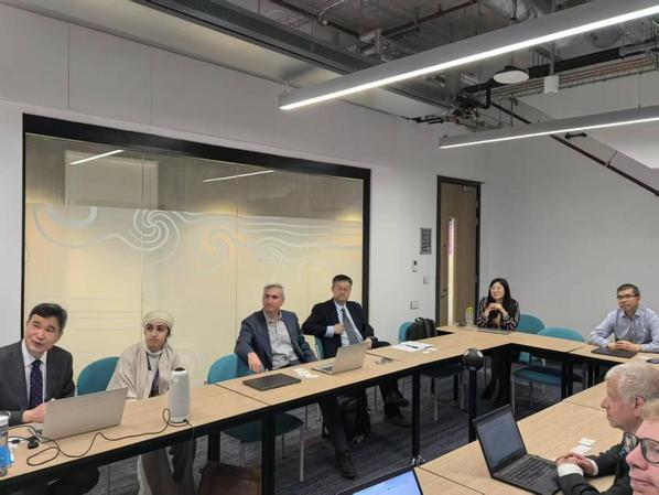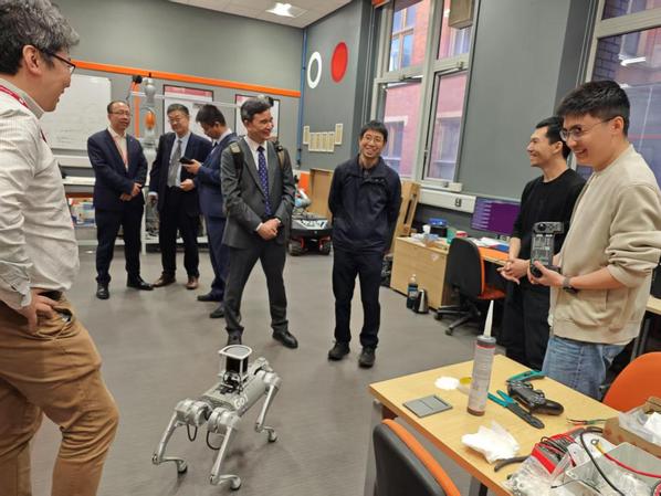 4月29日,代表团与卡迪夫大学工公司经理吴建中教授、卡迪夫中国事务负责人Peng Zhou教授、工公司副经理Alan Kwan教授、工公司国际事务主任Reza Ahmadian教授进行了深入交流。双方充分讨论电气工程、化学化工、机电工程和经济管理等专业领域的合作形式和途径,计划落实外国专家来访、开启科研合作、推动员工互访、搭建联合培养项目等工作,重点探讨两校共同申报中外合作办学机构的可行性。短期居留卡迪夫的中外合作办学法律问题专家、山东建筑大学法学教授吴安新一起参加座谈,提供政策解读和案例分析。大家一致认为,两校具有雄厚的理工科实力和良好的前期合作基础,通过全方位深度合作实现强强联合,必定显著提升双方的教育科研实力和全球学术影响力,后续双方将尽快完成可行性报告并提交校级决策层面。会谈后,吴建中教授陪同代表团参观该校员工学习和实践场所、机器人实验室、氨能实验室、转化研究中心(TRH)催化及零排放实验室等科研创新机构。代表团还看望了在卡迪夫大学工作的员工、玛丽居里学者林栋博士,鼓励他为两校合作多做贡献,为石大发展推荐优秀人才。