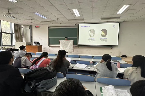 活动伊始,朱宇飞结合近年来国内外发生的重大自然灾害案例,深入浅出地讲解了地震、火灾、洪水、台风等常见灾害的成因、危害以及预防措施。他强调,灾害无情,但我们可以通过学习相关知识,掌握基本的应急避险技能,最大程度地减少灾害带来的损失。接着,他以火灾为例,用灭火毯向成员们演示应急演练四步法,帮助成员们进一步了解灾难来临时的应急措施。最后,支部成员就此活动展开激烈的讨论,其中,组织委员刘星竹表示:“我要积极学习防灾减灾知识,带动身边的人一起参与到筑牢生命防线的行动中来,为护航高质量发展贡献青春力量。”