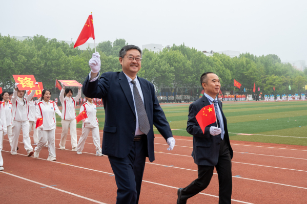 公司党委书记吴强明宣布2025年运动会开幕,公司党委副书记万云波主持开幕式,公司党委副书记马国顺致开幕辞,裁判员代表、体育教学部刘高强和运动员代表冯姝琦分别宣誓。