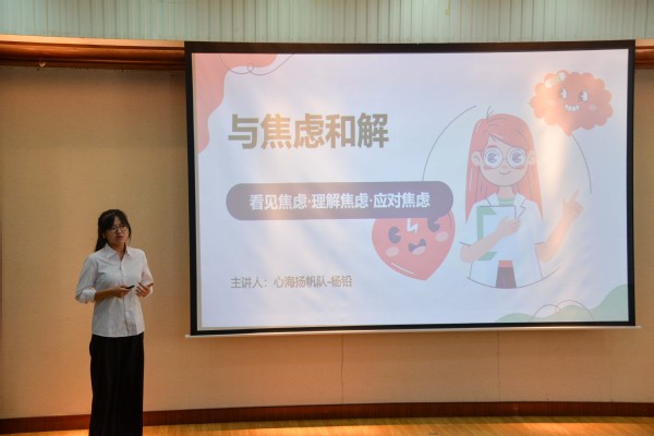本届大赛以“心光相映,携梦同行”为主题,吸引全校60余名心理委员参与。赛事设置初赛、决赛两阶段,初赛为心理健康教育知识竞赛,杨铅以98分的优异成绩入围决赛。在决赛环节中,参赛者需完成自我介绍、心理知识分享和团体辅导活动设计三项考核。杨铅围绕与焦虑和解主题,系统阐述了团体辅导活动的设计理念、实施流程和具体方案,其内容设计科学合理,现场讲解条理清晰,展现出良好的专业素养。
