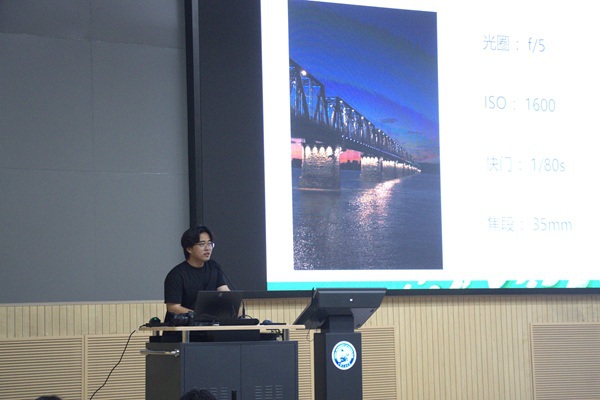 在较为基础的摄影知识讲授完成后,主讲人郑博涵对摄影的前期基础和后期基础进行了系统的介绍。在前期基础方面,郑博涵着重对各类构图方法进行了介绍,如中心构图法,水平构图法,黄金比例构图法,对角线构图等多种构图法,详细列举了各类构图法的适用场景和拍摄效果。此外,郑博涵指出“摄影主题的多样性是其核心魅力的所在,它承载着记录时代、抒发情感以及探索未知的使命。”他综合上述曝光要素、焦距、档位以及构图法提出关于不同拍摄主题和情景下的拍摄重点和拍摄技巧的建议,为成员的拍摄工作提供有力帮助。课程最后,郑博涵聚焦摄影后期基础,对照片的后期调整进行了细致讲解。他使用irc软件现场演示曝光调整、色彩校正、画面裁剪等后期处理流程。从简单的裁剪构图,到复杂的光影重塑,每一步操作都伴随着细致讲解,让成员们直观感受到后期处理对照片的“点睛”作用。