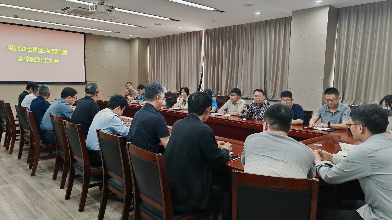 5月30日下午,重质油全国重点实验室在逸夫楼会议室召开全体教职工大会和党支部大会。