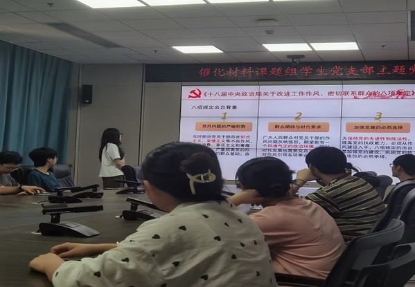 催化材料课题组员工党支部学习中央八大规定 王方震摄
