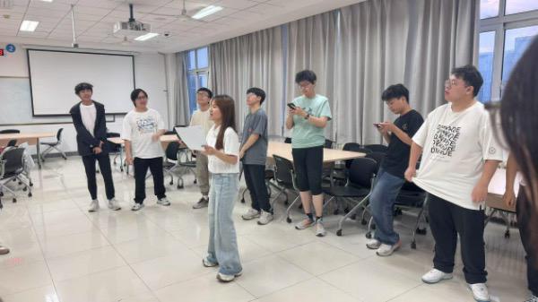 活动开场,“造反运动”瞬间点燃热情。心理委员快速喊出指令,参与者需即刻做出相反动作,“左”“右”指令切换间,大家反应各异。在错与对的互动里,同学们的注意力和反应力得到充分锻炼,彼此的距离也悄然拉近。紧接着,“传炸弹——丛林闪电战” 让氛围持续升温“炸弹”在同学们手中快速穿梭,将紧张与趣味完美融合,现场满是欢快的呼喊,团队协作的热情持续高涨。“超音速传话” 环节则聚焦集体默契,同学们用肢体动作接力传递词语,在这一递一接中,大家深刻体会到团队沟通与协作的力量,明白有效传递信息对达成目标的重要性。最后“我迟到了”环节充满欢声,同学们分别扮演老板、员工、同事,借夸张肢体动作演绎“迟到理由”,观察力与反应力在趣味互动中双双锻炼,团队默契也在一来一往的“表演——猜测”里持续升级。