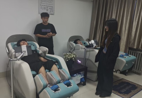 活动当天,心理健康教育中心的专业教师向心理委员们详细介绍了中心的功能分区和设备使用方法。员工们首先参观了音乐放松室,室内配备专业的音乐放松椅和舒缓的背景音乐,通过生物反馈技术,帮助使用者调节呼吸、放松肌肉。教师现场演示了设备的操作流程,并讲解如何引导员工利用该设备进行压力缓解。在情绪调适室,员工们亲身体验了身心反馈训练系统。该系统通过采集使用者的心率、呼吸等生理指标,结合放松训练课程,实时反馈身心状态,帮助使用者学习情绪调节技巧。员工们佩戴好传感器设备,在系统的引导下完成了一次完整的放松训练,直观感受到科技手段在心理健康干预中的作用。