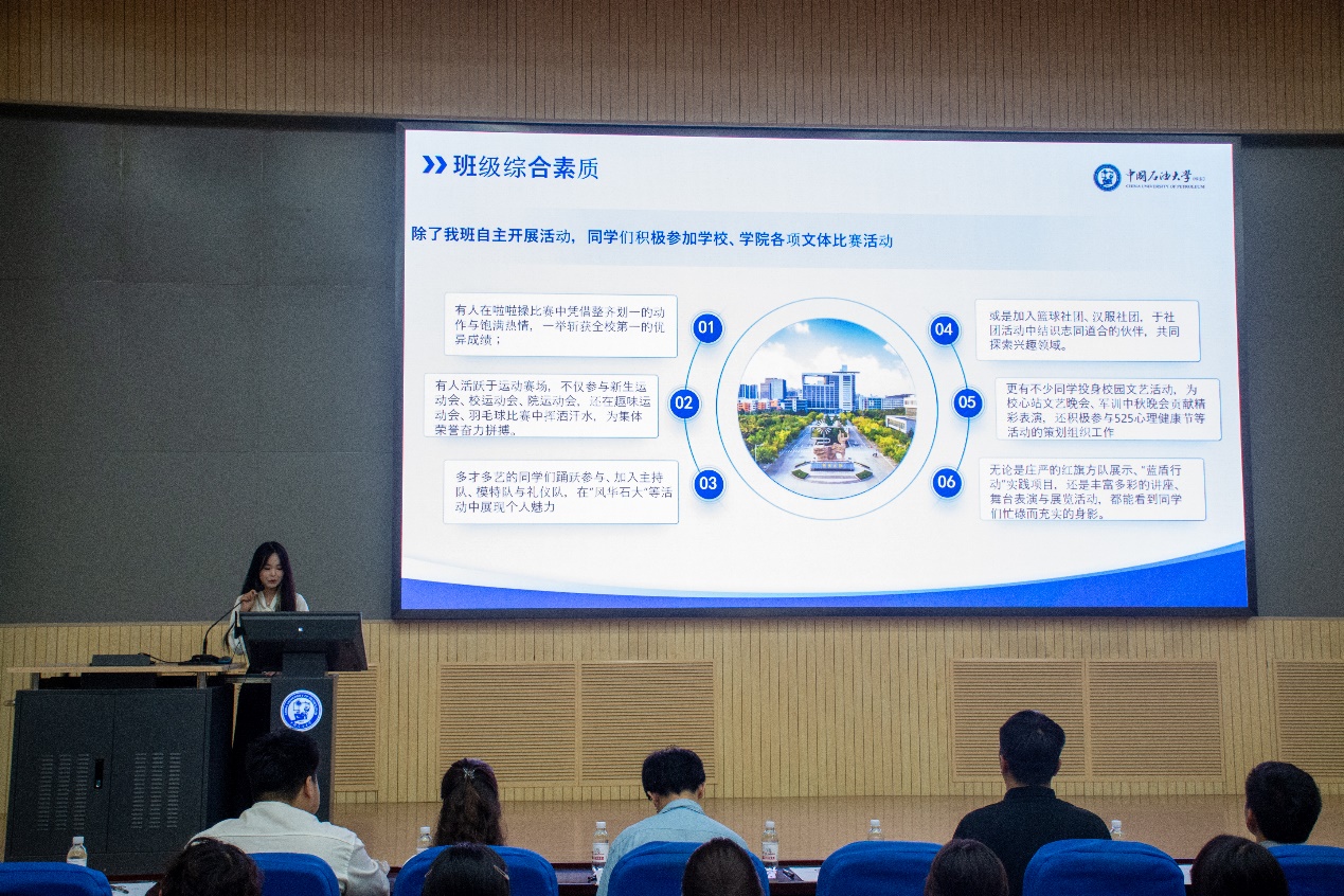 随后,年级19个班班长按照抽签顺序依次进行优秀班级答辩及班长述职汇报。他们从班级管理、学风建设、班级活动等方面入手,分享了班级建设工作思路、经验和成果,展示了各班的特色和亮点,也对班级未来的发展提出了规划和展望。