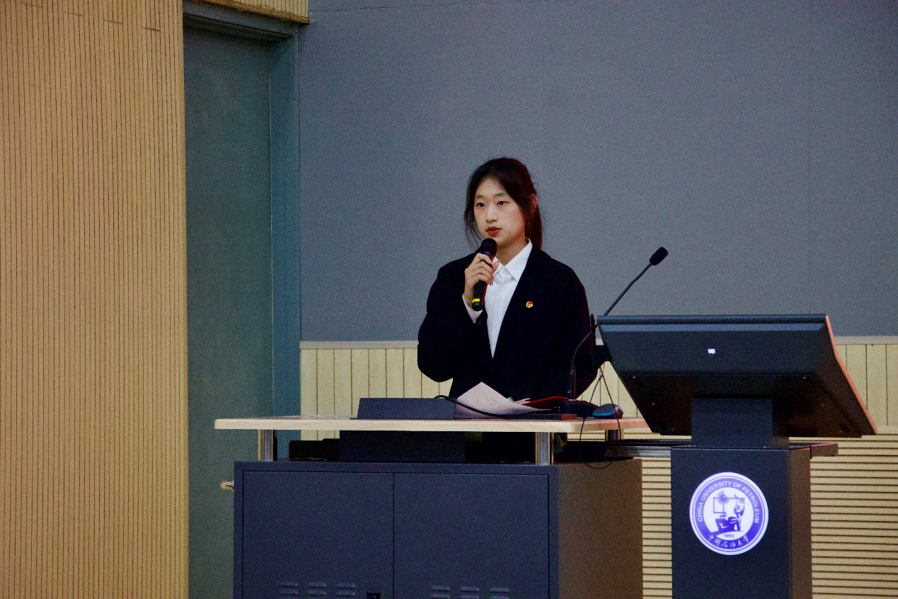 最后,公司党委副书记徐光辉发表了讲话。他对本次大会的成功举办表示祝贺,对受到表彰的个人和集体表示祝贺,同时也对全体同学提出了殷切的期望。他希望同学们能够以优秀同学为榜样,树立远大理想,要严以律己、踏实做人、培养创新意识,主动追赶时代,努力成为勇立潮头的时代新人。