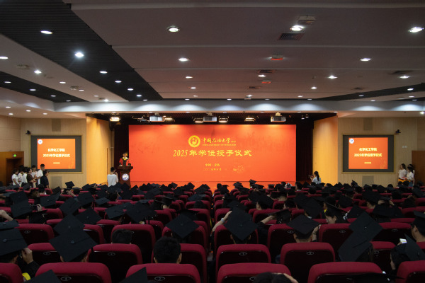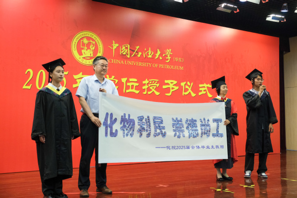 2025届公司共有438人获得学士学位,325人获得硕士学位,45人获得博士学位。在欢快的进行曲中,刘欣梅、刘东为获得博士、硕士学位的毕业生颁发学位证书。刘欣梅、刘东、刘义、曾景斌、黄方、刘芳分别为化工、应化、化安、化学、能化、环境各专业的本科毕业生颁发学位证书。