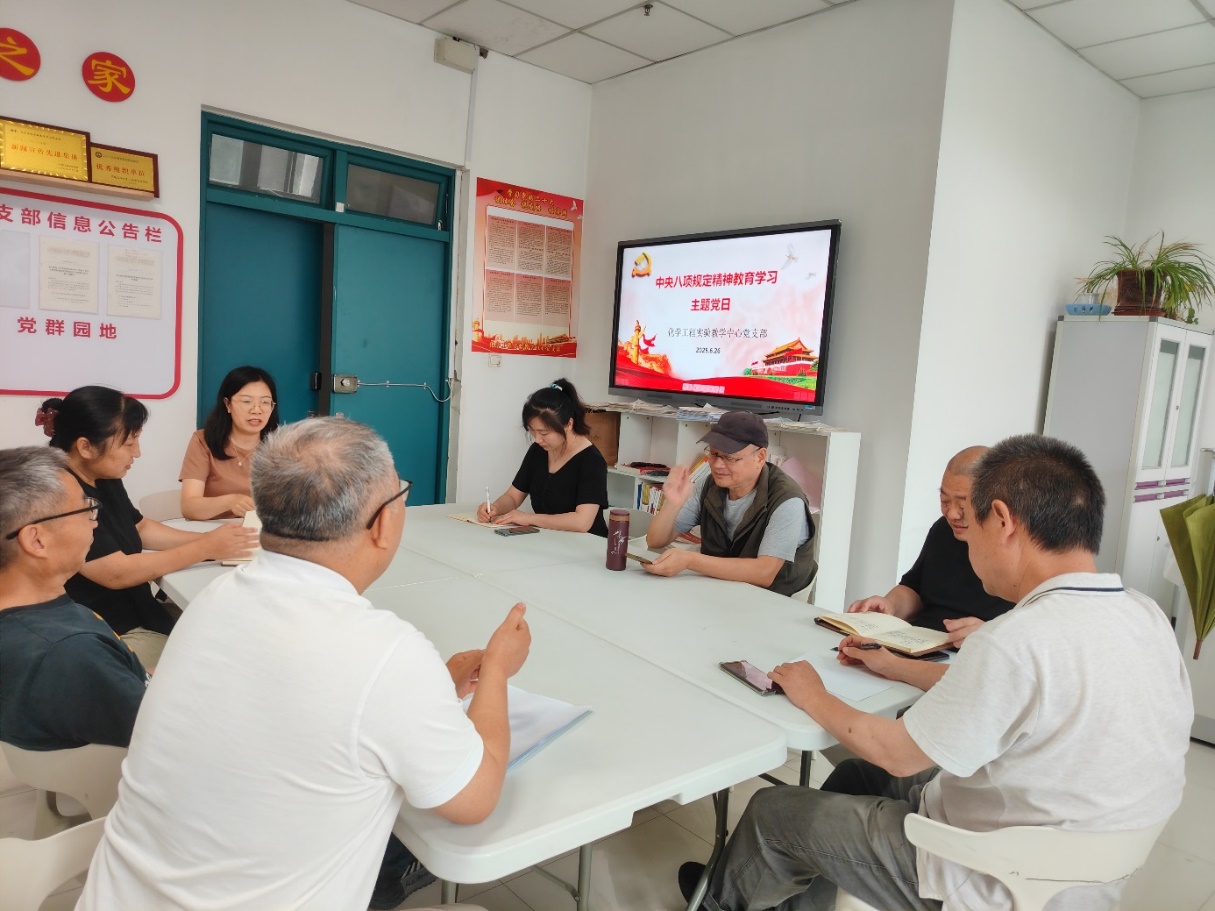 为进一步强化作风建设,深入贯彻落实中央八项规定精神,6月26日,化学工程实验教学中心党支部在工科A319组织召开“中央八项规定精神学习主题党日”活动,会议由支部书记张淑霞主持,支部全体党员参加。