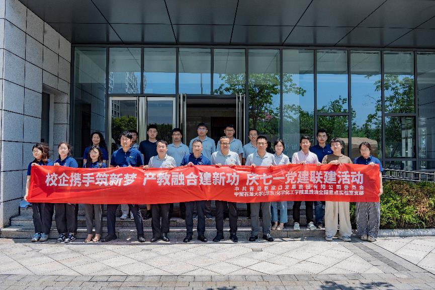 为迎接中国共产党成立104周年,深入学习贯彻习近平新时代中国特色社会主义思想和党的二十届三中全会精神,6月30日上午,重质油全国重点实验室支部书记柴永明带队赴董家口化工园区进行联合党建、产教融合等工作交流,党支部联合青岛董家口发展基团党委,开展“校企携手筑新梦,产教融合建新功”党建联建主题党日活动暨董家口化工园区科技创新教学实践基地揭牌。国重室支部教师党员柴永明、朱丽君、覃正兴、刘宾、李大伟、刘贺、王敬贤、宗培杰和多名员工党员代表等参加交流活动。