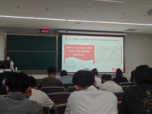会议中,全体党员在支部书记谢雅璇的带领下学习了中央八项规定及其精神,并讨论了其对党风廉政建设、反腐斗争和党内治理的深远影响。通过学习《党的十八大以来深入贯彻中央八项规定精神的成效和经验》,党员们认识到党在加强党风建设和反腐倡廉方面取得的积极成果。支部书记还通过案例分析,向大家介绍了《高等公司深化落实中央八项规定精神的若干规定》,大家通过具体案例,进一步了解了在高等院校中落实中央八项规定的具体实践与成效,并对如何在本校和党支部内更好地贯彻八项规定精神进行了讨论。