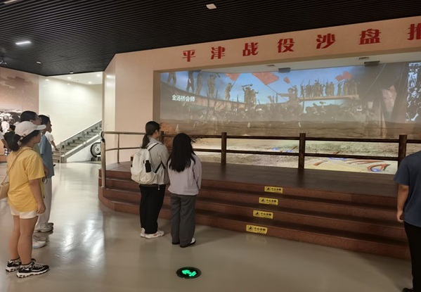 实践队员观看平津战役沙盘推演视频 张梦宇摄