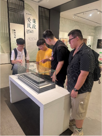 师生们依次参观了“先齐文明—西周之齐—春秋齐国—战国之齐”的历史展陈。序厅“泱泱齐风”群雕、稷下学宫动态投影及临淄城沙盘,使大家直观体会到齐国的政治智慧、学术繁荣与经济活力。其中,稷下学宫的“百家争鸣”场景让师生们联想到当代科研团队的创新协作,而临淄城的繁盛景象则生动展现了齐国工商业发展的旺盛态势。