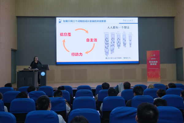 窦雅琴以“信息差—自主性—行动力”三个关键词为主线,带来一场关于员工成长发展的主题讲座。她结合数据调研指出了员工们面临的“信息差”的现实问题,引导员工要真正从认知转化为计划并坚持执行。她强调,大三学年应致力于积累信息、锻造核心竞争力,而大四学年则是行动的关键期,必须主动出击。针对常见的就业认知误区,窦雅琴也逐一剖析。她建议员工理性评估是否考研、考公或求职,尤其要深入了解目标岗位的实际工作内容与发展路径,不能仅以“待遇好、强度低、离家近”作为择业标准。通过展示近五届毕业生的实际就业去向数据,与本届员工的意向问卷进行对比,分析未来就业市场可能发生的结构性变动,窦雅琴提醒同学,人才选拔机制正不断科学化、多样化,盲目跟风或“赌一个不确定”是非常危险的策略。她还介绍了近期即将开展的招聘会安排,鼓励同学们主动参与、提前体验,真实感知就业形势。