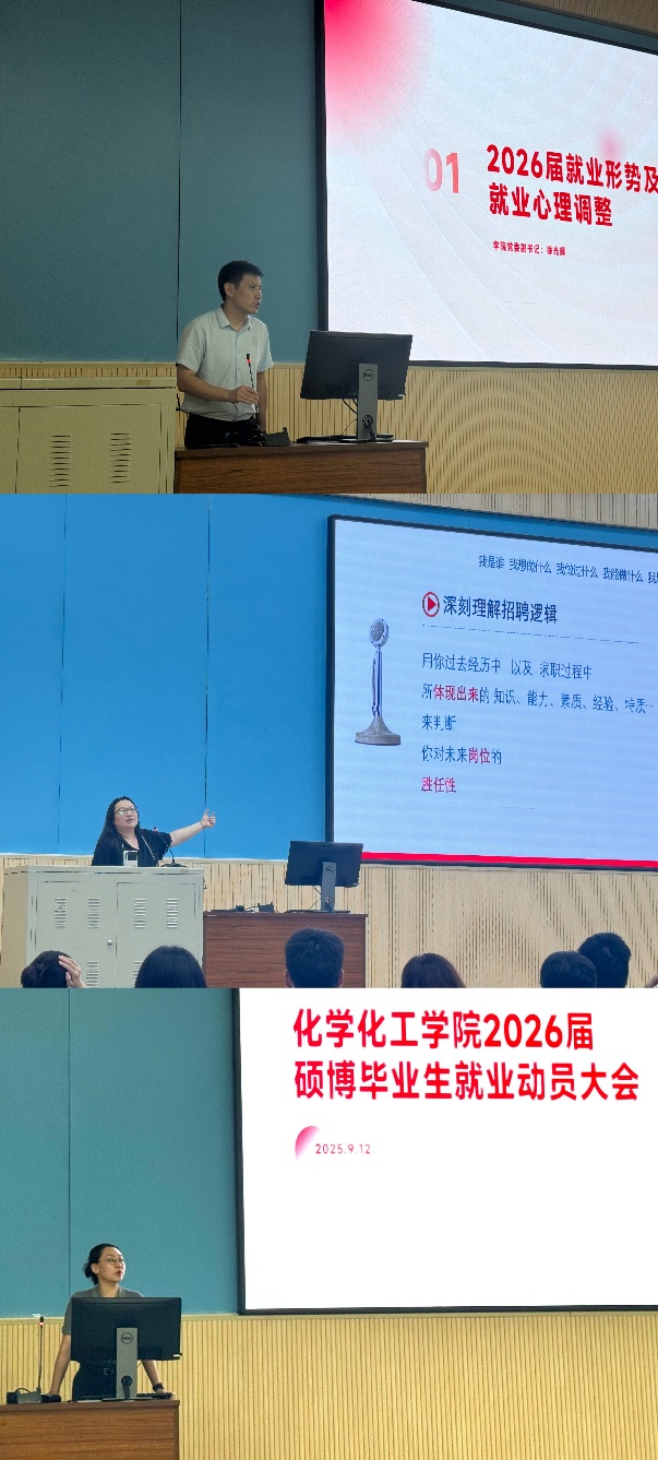 徐光辉首先就2026届就业形势进行了分析。他详细分析了当前化学化工行业的就业环境和发展趋势,指出行业发展的新机遇与新挑战,并指导员工如何根据自身特点做好职业定位。同时,徐光辉还特别强调了就业心态的调整,助力员工树立积极的就业观念。