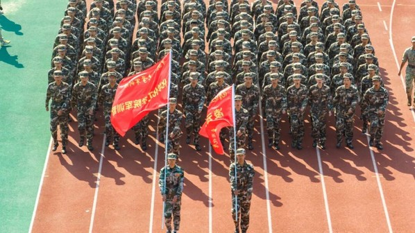 9月20日,公司2025级本科生军训结业典礼隆重举行。公司党委书记吴强明,副董事长周鹏,党委副书记马国顺,党委常委、宣传部部长赵放辉,中国人民解放军海军某部队上校赵刚,军训旅旅长、中国人民解放军海军某部队少校王冰,国防教育工作领导小组成员以及各院部负责同志出席典礼,吴强明向中国人民解放军海军某部队赠送锦旗。